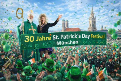 Wenn im März Grün zur Trendfarbe wird, liegt das weniger am Frühlingserwachen, sondern vielmehr an den Feierlichkeiten zum St. Patrick’s Day in München. Am 14. und 15. März 2026 werden wieder Tausende auf den Straßen dem irischen Nationalheiligen huldigen und sich für die „grüne Insel” farblich passend in Schale werfen. 30 Jahre besteht diese Tradition schon in der bayerischen Landeshauptstadt. 1996 fand hier nämlich die erste Parade zum St. Patrick’s Day statt. Seitdem hat sich die Veranstaltung zu einem Fixpunkt im Event-Kalender gemausert und gilt inzwischen als größte Festivität zum irischen Nationalfeiertag auf dem europäischen Festland. Veranstalter des St. Patrick’s Day Festivals ist das Munich Irish Network e. V. (MIN) als Dachorganisation, unterstützt von zahlreichen ehrenamtlichen Helferinnen und Helfern verschiedener Vereine. Schirmherr ist seit vielen Jahren Münchens Oberbürgermeister Dieter Reiter. Die Stadt München leistet zudem einen wichtigen Beitrag zum Gelingen des