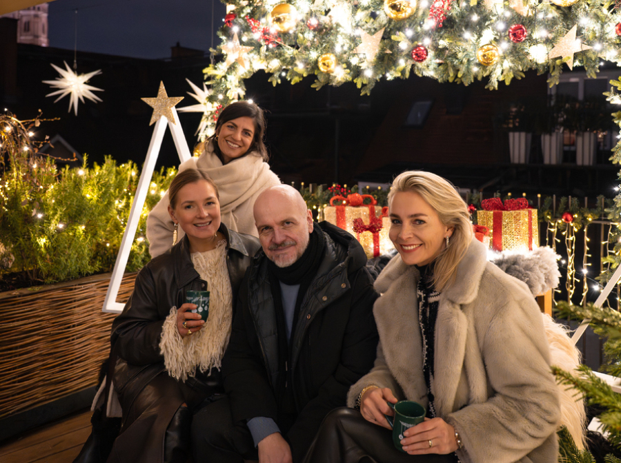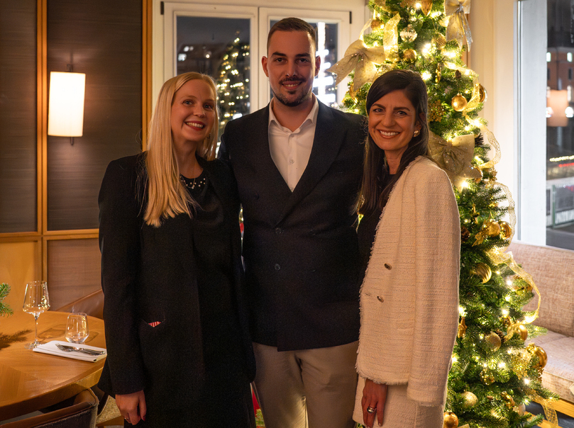 Hoteldirektor Paul Gründemann empfing gemeinsam mit seiner Stellvertreterin Selina Röder die Gäste mit Champagner in der Lobby vor dem stilvoll geschmückten Christbaum, bevor ein köstliches 4-Gang-Menü im LOUIS Grillroom mit Blick auf den Viktualienmarkt serviert wurde.