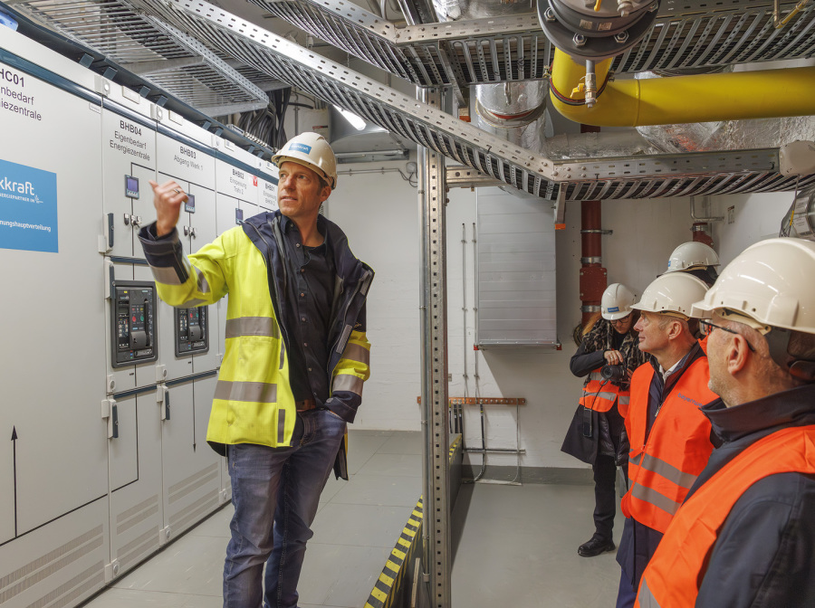 Bei einer Führung durch die Energiezentrale konnten alle einen Blick auf die Erzeugungskomponenten werfen und erlebten das innovative und beeindruckende Energiesystem.