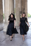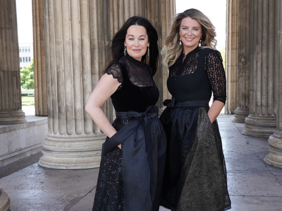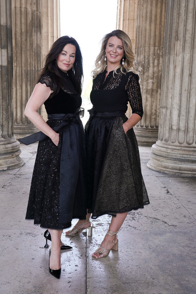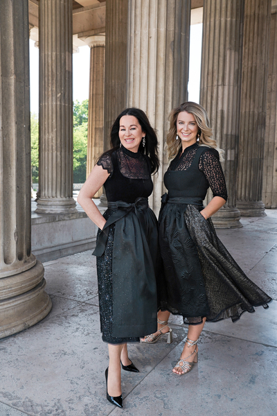 Rund 100 geladene Gäste werden erwartet, darunter neben Unternehmerinnen und „Belladonna“-Member auch zahlreiche prominente Persönlichkeiten wie Moderatorin Alexandra Polzin, Trachten-Designerin Anja Gräfin von Keyserlingk und PR-Lady Uschi Ackermann. Die Tracht ist dann Pflicht, und einen modischen Vorgeschmack gaben die beiden bereits jetzt und präsentierten diese beim Shooting mit Fotografin Tanja Valérien am Münchner Königsplatz: Sie trugen elegante Haute Couture Dirndl aus der Kollektion des Designer-Duos „Talbot Runhof“. Same, same, but different: Beide trugen Schwarz, aber unterschiedliche Modelle. Michaela Aschberger das Dirndl „Servus1“ und Franziska Kohlpaintner das Model „Spatzerl1“.