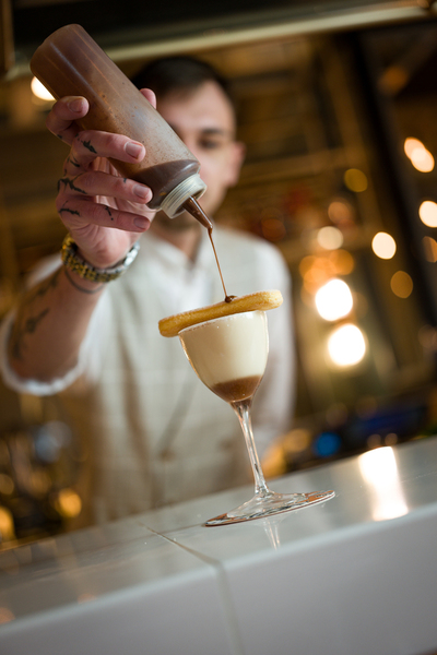 Garnelen in einem Zimt-Tomatensud, Bühners berühmte „Fluffy Duck“ und sein Signature Dish, Gänselebercreme mit Coca-Cola-Gelée, setzten weitere Akzente, während Spitzkohl mit Ingwercreme und Reh in weihnachtlichen Gewürzen Fleischliebhaber wie auch die vegetarischen Alternativen die Gäste gleichermaßen begeisterten.