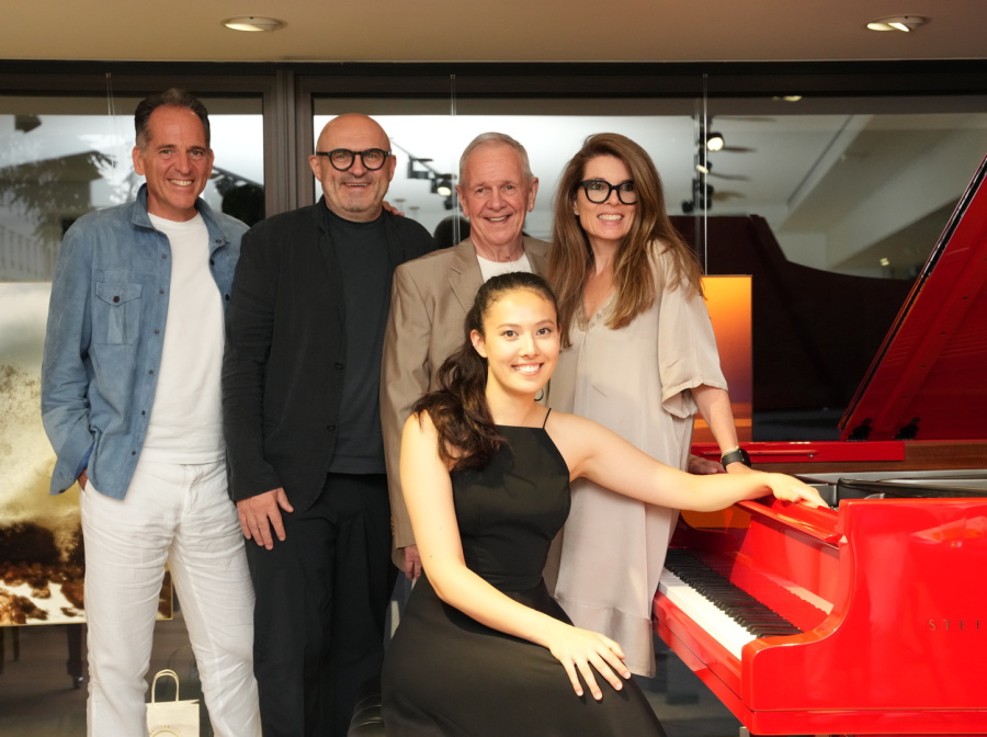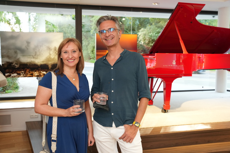 Zur Vernissage bei Steinway & Sons begrüsste Hausherr Joe Plakinger u.a. Moderator Fritz Egner, die Schauspielerin Gabrielle Odinis, Star-Friseur Manfred Kraft, die Unternehmer:innen Jochen Ofner (Profinanz Capital Partners) und Dunja Siegel, Leica Galerist Stefan Huber sowie Internist Dr. Tobias Sokolowski.