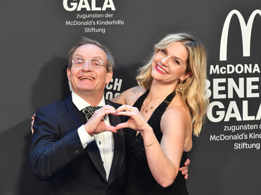 Sie kam im roten Kleid, er mit rot-weißen Socken: „Es ist das erste Mal, dass wir bei dieser Gala gemeinsam an einem Tisch sitzen können. Ich habe mir heute eigens die Spendiersocken von McDonald’s angezogen“, freute er sich. „Unsere Kinder sind heute Abend bei der Oma.“