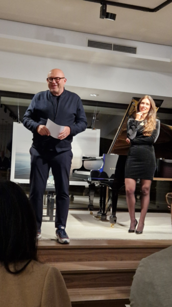 Neben der offiziellen Einführung durch die Kuratorin und einem Künstlergespräch mit Esad Cicic erwartete die Gäste eine musikalische Live-Performance auf einem Konzertflügel von Steinway & Sons.