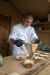 Wie in der Architektur des Hauses sind auch in der Küche die Zutaten klar und ehrlich, das Gros kommt aus der direkten Umgebung, bevorzugt aus biologischer Landwirtschaft. Traditionelles wird neu interpretiert, ohne Schnörkel und Chichi.
